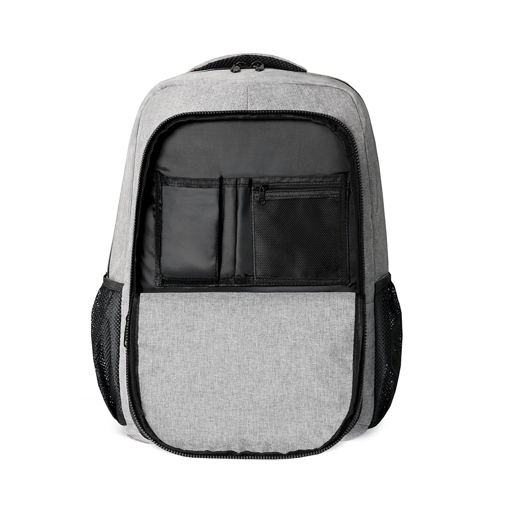 Discover the ultimate in convenience and comfort with our Ultimate Full-Zip Backpack. Designed for those who need ample storage and organization on the go, this backpack is perfect for students, and athletes. The front pocket can be fully opened to additional slip and zippered pockets for quick access to smaller items. The secondary compartment: Includes multiple pockets and dividers to keep your essentials organized. The third compartment has a full-zip design for easy access and efficient packing. It features a padded laptop sleeve and a velcro strap for protection. A padded back panel, adjustable padded shoulder straps, and a durable top handle for easy carrying. Side mesh pockets for water bottles.