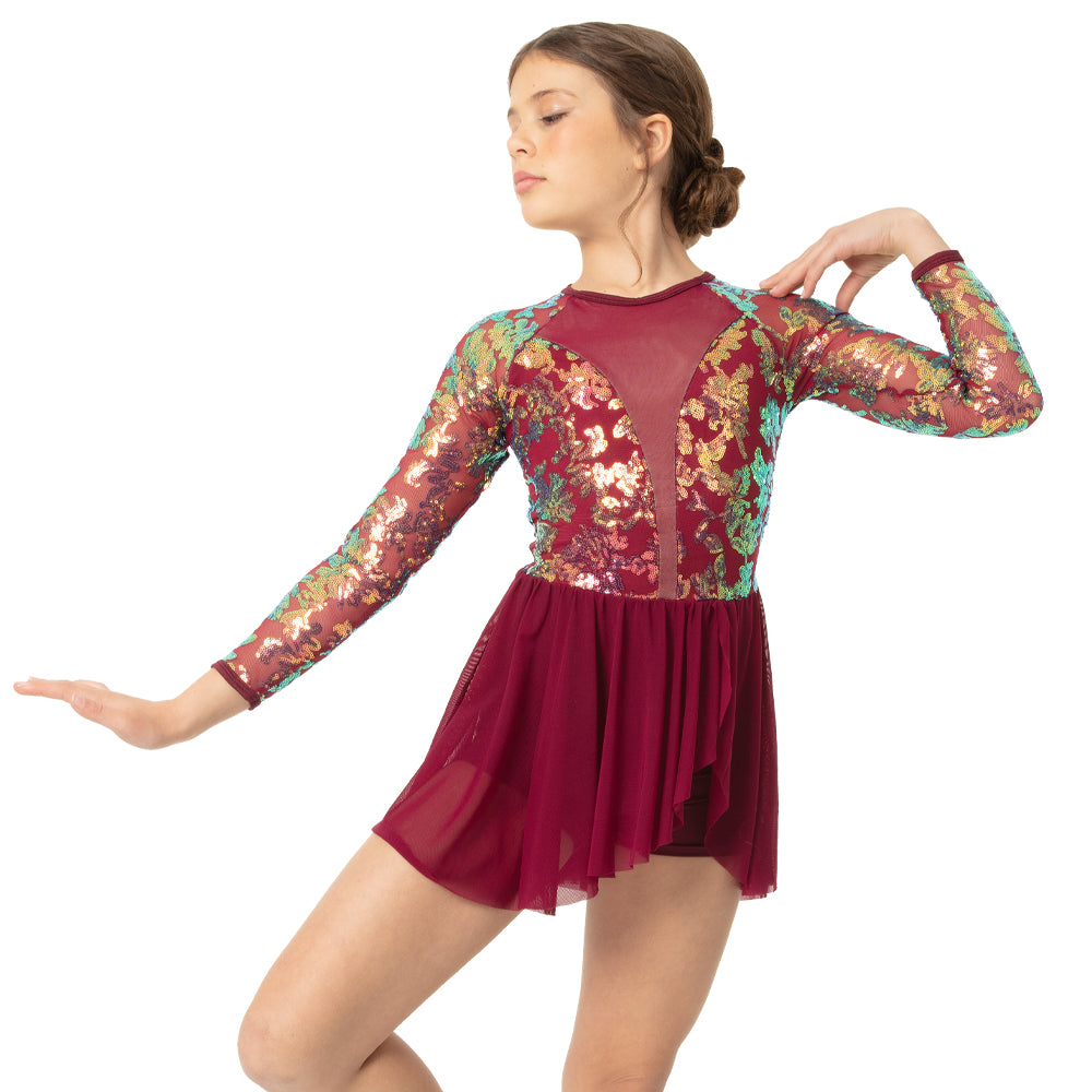 Alexandra Youth Velvet Long Sleeve Skirted Leotard